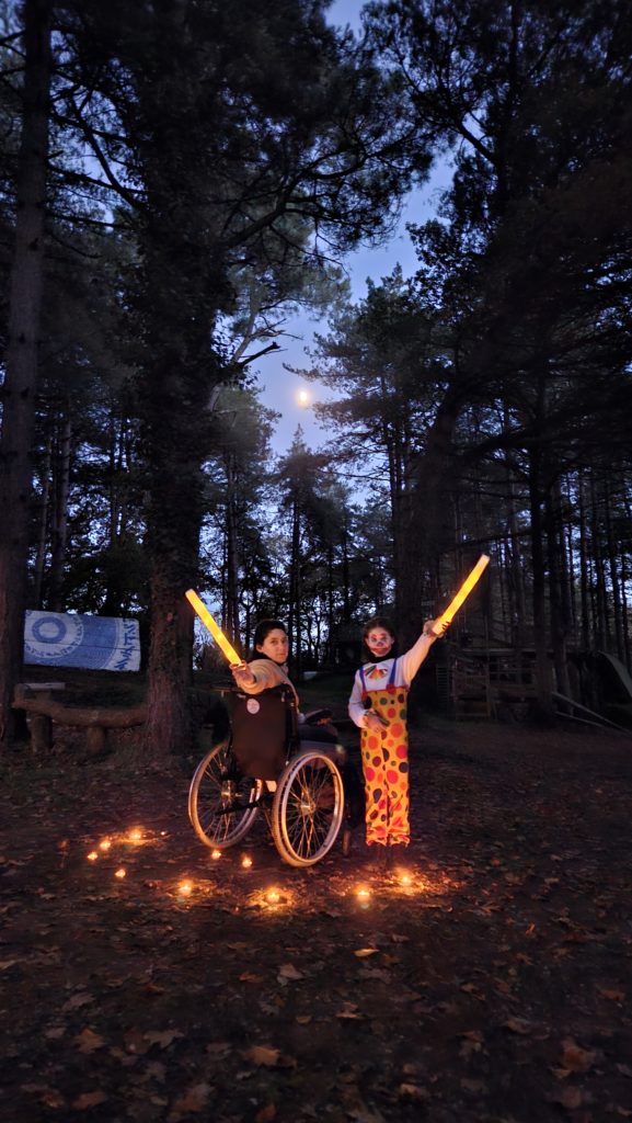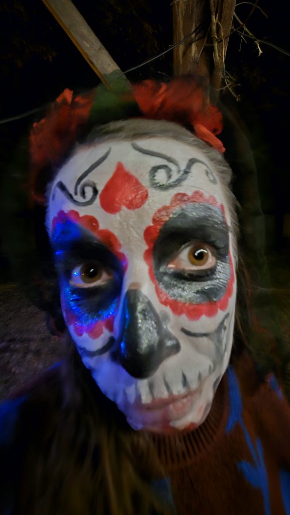 Fin de la session….mais nous sommes le 31 octobre… et c’est Halloween ! chasse aux bonbons dans tout le park ! Puis descente aux flambeaux dans la nuit. Pas simple de rider dans le noir, mais fous rires et souvenirs assurés !